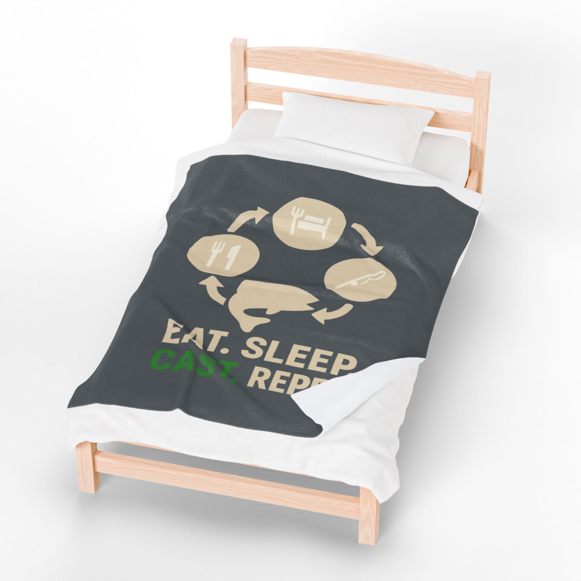 Fishing Enthusiast Velveteen Plush Blanket, Cozy Throw for Anglers, Eat Sleep Cast Repeat Blanket, Gifts for Fishermen, Relaxation, [...]