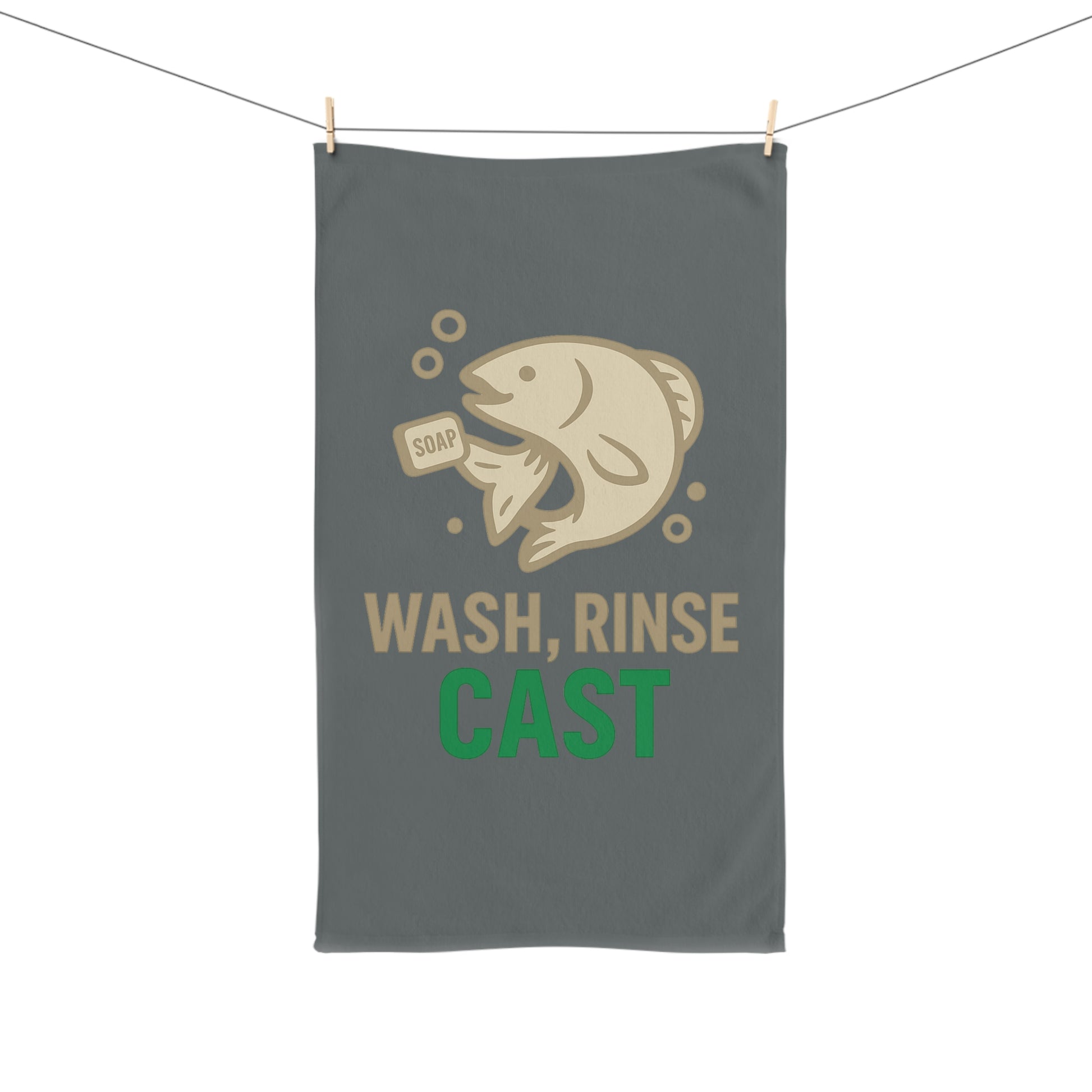 Fishing Themed Hand Towel with 'Wash, Rinse, Cast' Design, Perfect for Fishermen, Kitchen Decor, Gifts for Him, Angler Accessories